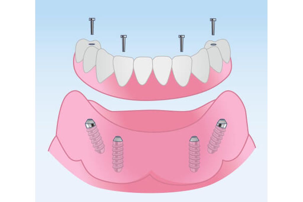 ![]() | インプラント+入れ歯 顎の骨にインプラントを埋め込み、入れ歯を安定させるタイプ。 |